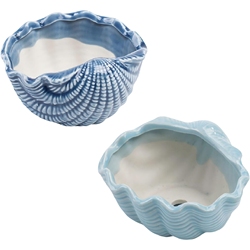Venta caliente Adorable Blue Sea Fan Mini macetas suculentas de cerámica en forma de almeja