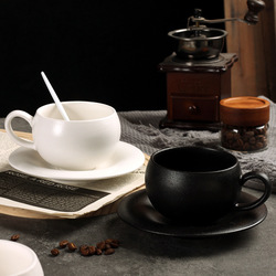 Juego de taza de café y platillo de cerámica mate hemisférica en blanco puro/negro-Fabricante personalizado y pedidos a granel