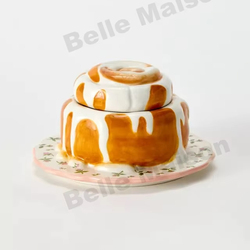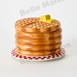 Cute Buttered Waffle Shaped Ceramic Candle Jar with Lid Storage Box Candy Jar Supports Customization Without Wax