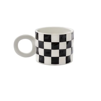 Customizable Checkerboard - Patterned Ceramic Mug - Ideal for Modern Home & Café Use