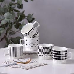 Tazza in ceramica impilabile in bianco e nero minimalista in stile nordico-tazza all'ingrosso e di personalizzazione
