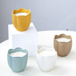 Barattolo di candela in ceramica opaca a forma di fiore senza coperchio-stile minimalista, ideale per creazioni all'ingrosso e personalizzate