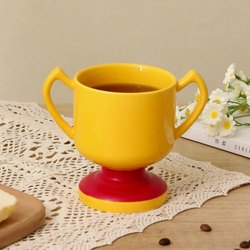 ถ้วยเซรามิกหูสองข้างสุดสร้างสรรค์รูปถ้วยรางวัลเหมาะสำหรับการปรับแต่งและขายส่ง