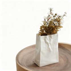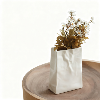 OEM fabrika özelleştirilebilir Minimalist kağıt torba şeklinde düzensiz seramik vazo iç tasarım toplu toptan için